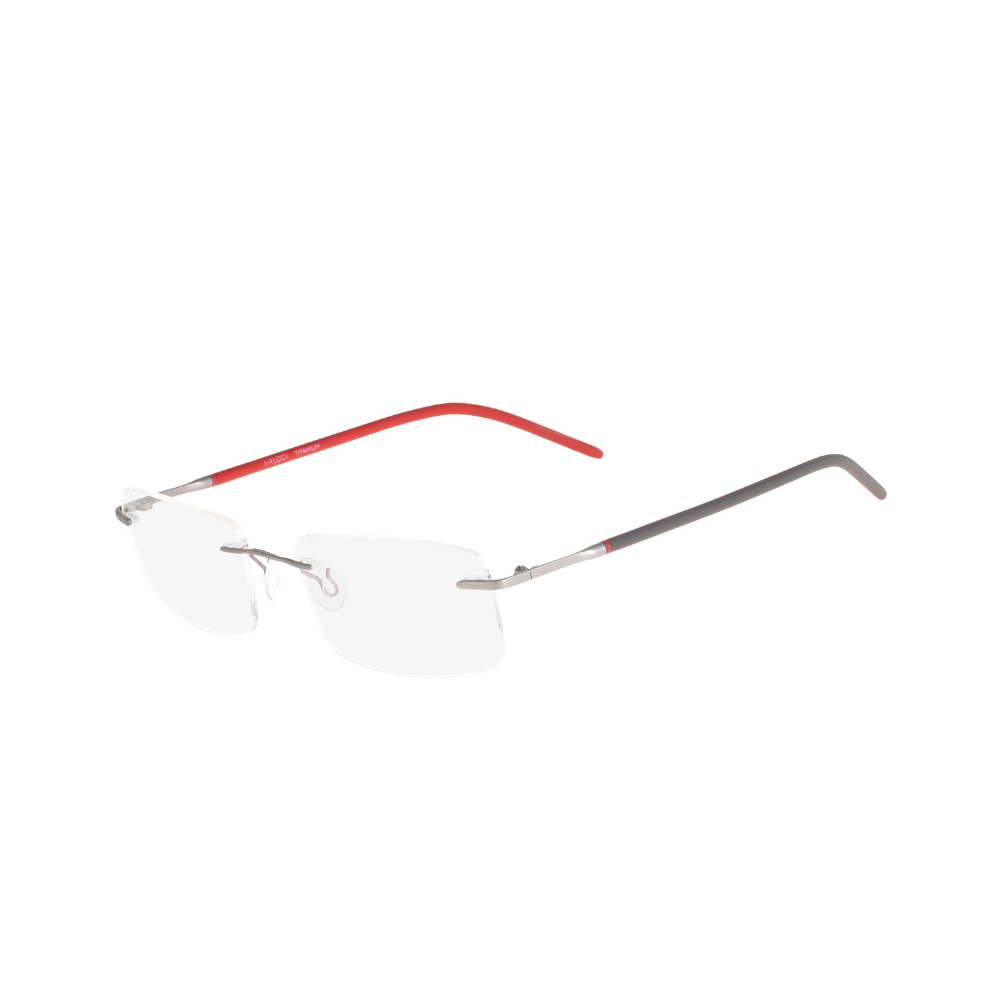 Armação griffe (sem aro) em titânio (hipoalérgico).