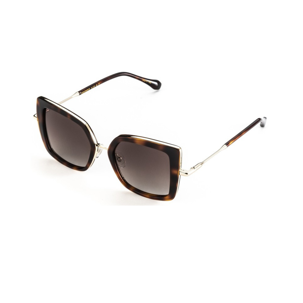 Óculos de sol em metal com acetato em volta da ocular, com lentes polarizadas.